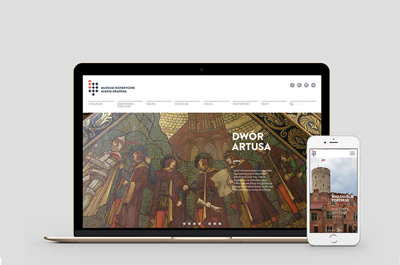 格但斯克历史博物馆(MHMG)始建于1970年,位于高耸的哥特式市政厅(位于长街的尽头,在长广场居于主导地位)里。展出旧格但斯克的照片和二战时期这个城市所收破坏的展品。虽然在二战中遭到了严重的破坏,但是这里现在已经恢复了16至17世纪,也就是波兰第二王国统治时代的原貌。 前不久,格但斯克历史博物馆通过网络征集的形式为自己征得了一个全新的形象标识,据了解,在收到上千件作品中,来自葡萄牙的一个设计工作室的作品引起了评为的注意,从而,这个作品在此次比赛中拔得头筹,最终成为博物馆全新的形象系统。新的标志设计由相对独立和比较简单的“+”和皇冠组成,整个结果类似一个盾牌,巧妙的和格但斯克主城市政厅建筑的造型结合在一起。