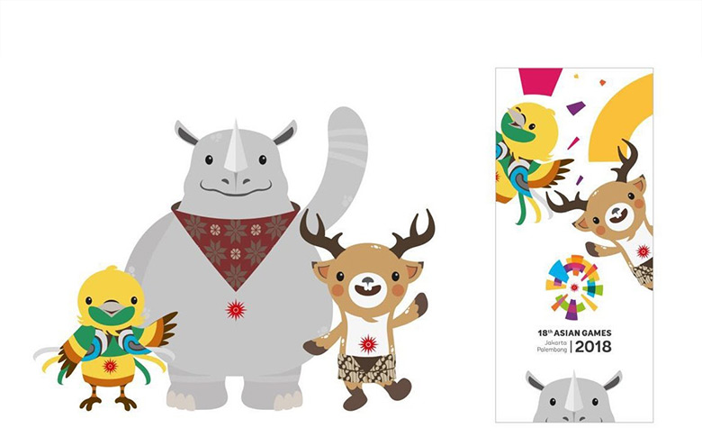 而此次推出的吉祥物由三种独特的野生动物组成,它们分别是极乐鸟“Bhin Bhin”、犀?!癐ka”和花鹿“Atung”。这三个动物代表印尼的三个区域,体现了民族团结意识。极乐鸟“Bhin Bhin”主要分布在印度尼西亚东部,其以美丽的羽毛著名于世,是智慧象征?!癐ka”独角犀牛来自印尼西部地区,是力量的象征。最后的巴岛花鹿“Atung”又名巴岛豚鹿,是印尼巴韦安岛上特有的鹿,是速度的象征。