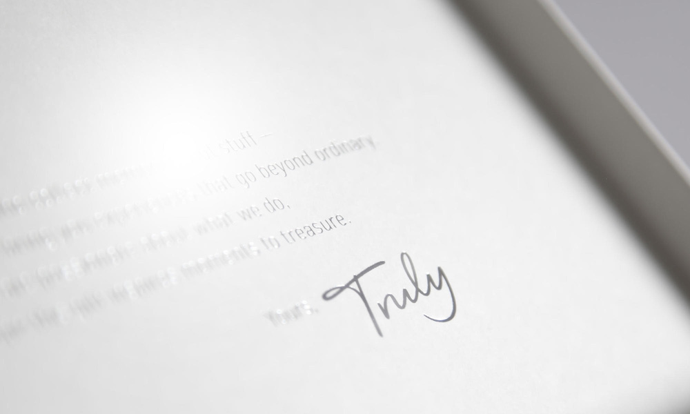 Truly成立于2013年,它是一个提供广泛的奢侈体验作为礼物的礼品平台。例如:对于一个78美元的礼物,它可以是你赠送给一个男人在约翰·艾伦在纽约的全套美容服务,又或是21,775美元的礼物,可能是一个纽约的私人的野餐与水上飞机活动;针对于生活中的女人,它可能是一个价值1,907美元的理发与名人发型师Ted Gibson所提供的理发服务,又或是一个18,900美元的法国ChateauBouffémont的独家租用。每件礼物都是在定制的礼品盒中交付的。上个月,Truly推出了由伦敦的Proxy设计公司所设计的新logo,由Rob Clarke设计的标志。