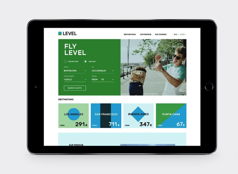 本月推出的LEVEL是一家新的低成本长途航空公司,将于6月份开展从巴塞罗那飞往加利福尼亚州洛杉矶、多米尼加共和国蓬塔卡纳和阿根廷的布宜诺斯艾利斯。单程到加州的机票可以低至99欧元。 LEVEL是IAG的第五家航空公司品牌,其它加入的航空公司包括:Aer Lingus,英国航空公司,伊比利亚和Vueling。LEVEL新的整体品牌形象由著名品牌设计机构Union设计。